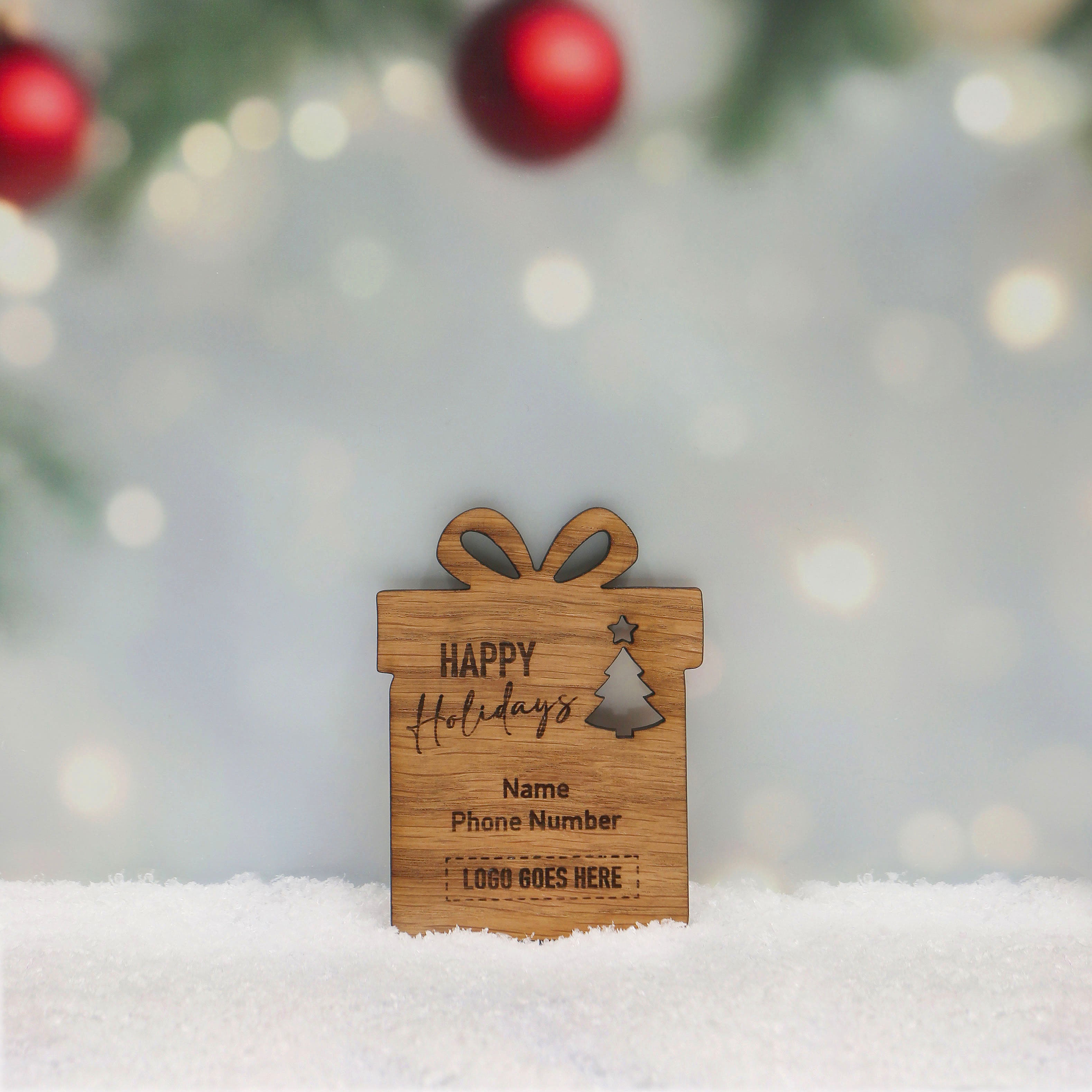 Laser engraved on sustainable wood with oak veneer, treated with linseed oil to bring out the depth of the wood and prolong longevity, engraved with your own Travel Professional Logo & details.