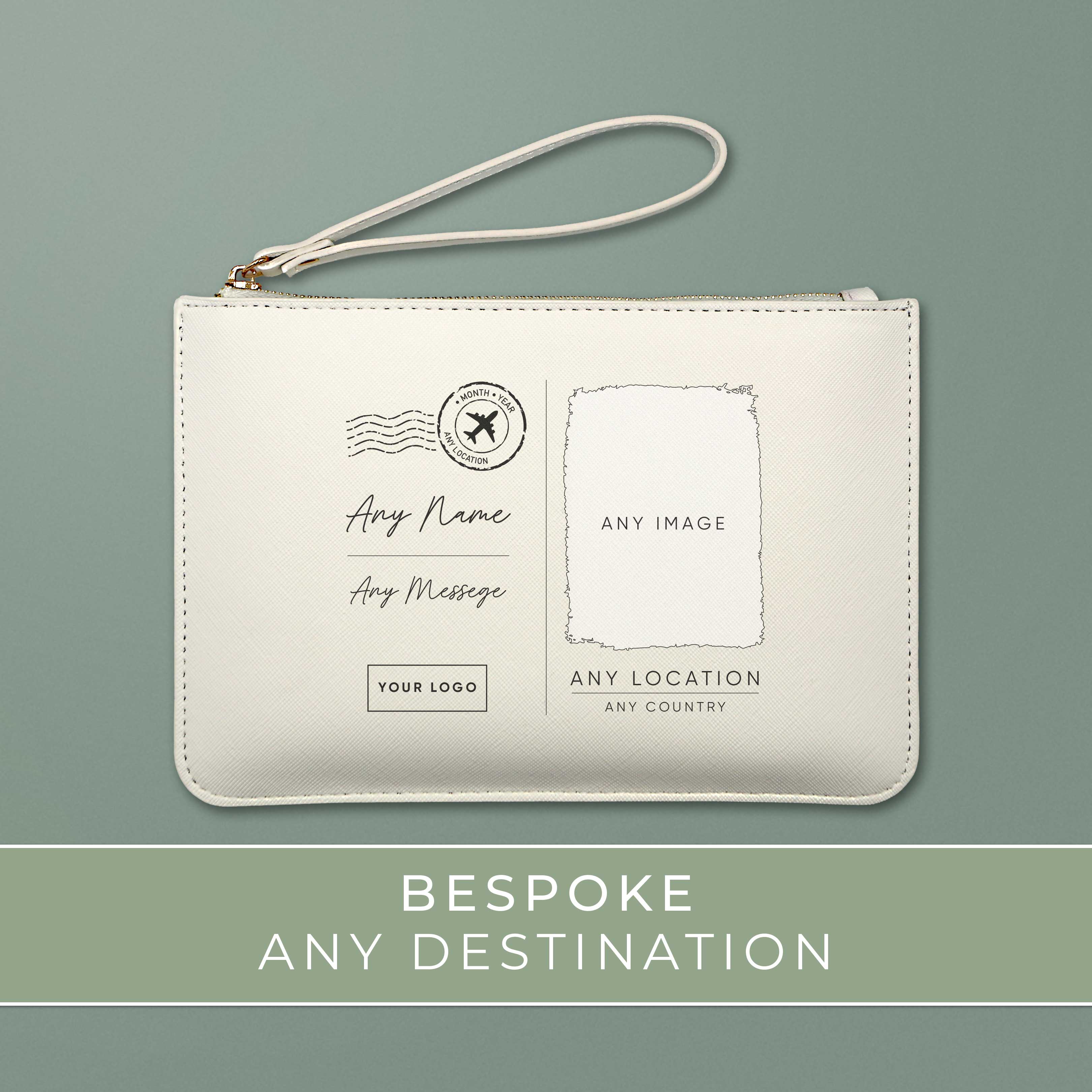Keep all your essential travel documents – passport, cruise tickets, boarding passes, and currency – neatly organised in one place. Made from fine-grain Saffiano PU with a soft-touch lining, each wallet features gold-tone hardware and a matching wristlet strap. Personalise it with any destination for a keepsake that’s as unique as your travels.